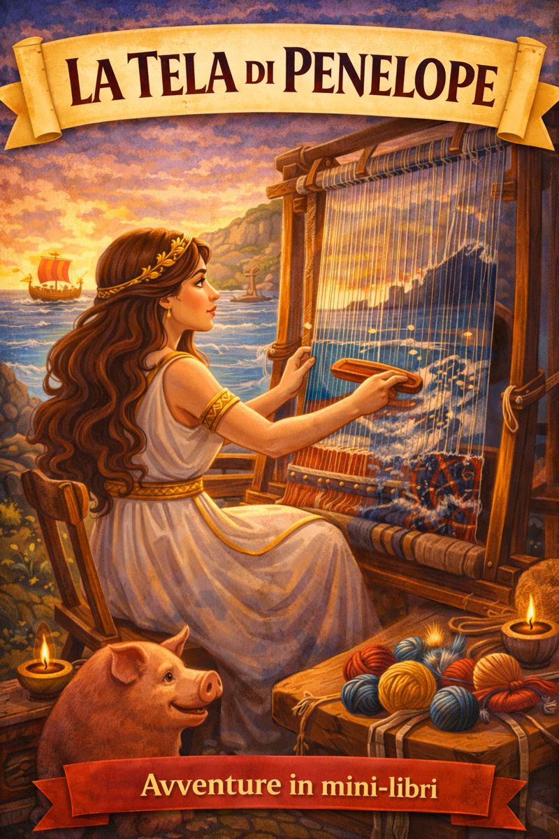 Questo mini-libro racconta uno degli episodi più significativi dell’Odissea: l’attesa di Penelope e il celebre stratagemma della tela. Mentre Ulisse è lontano, Penelope tesse di giorno e disfa di notte, ingannando i pretendenti e dimostrando intelligenza, pazienza e determinazione.
